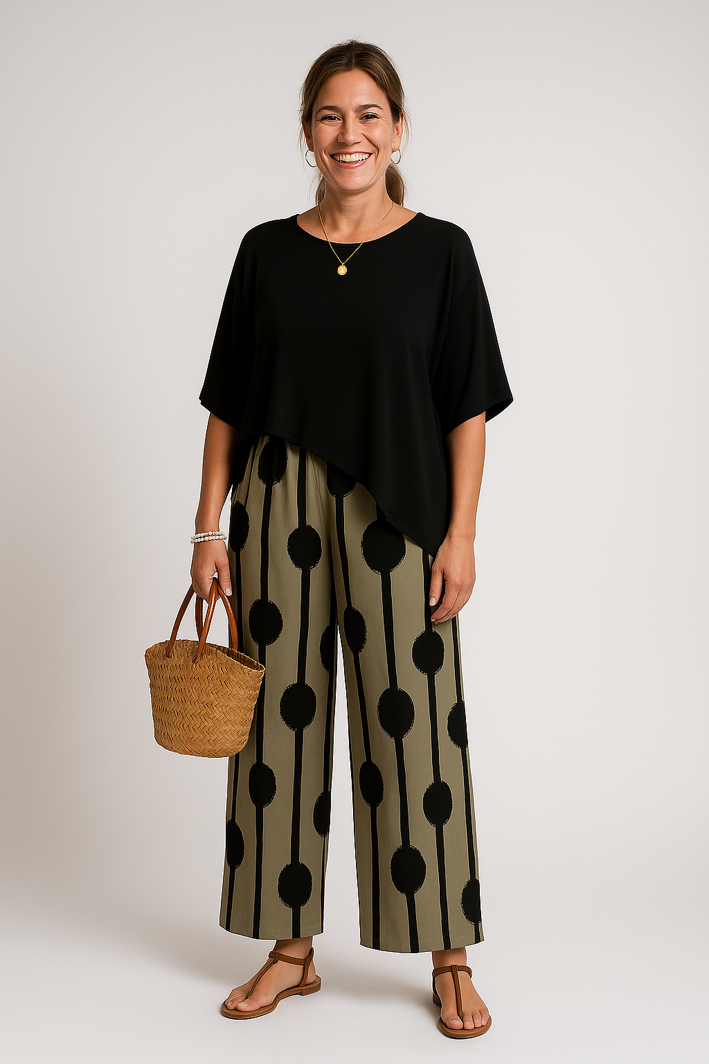 - Statement Trousers – Wide-leg pants with a bold, artistic print instantly elevate your summer wardrobe.