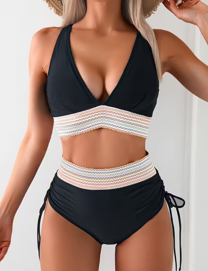 The Lisa Bikini Set is designed for those who want to feel supported and stunning at the same time. With its flattering high-waisted fit and elegant detailing under the bust, it enhances your natural curves while offering just the right amount of tummy coverage. Perfect for poolside lounging or seaside adventures, Lisa is your feel-good summer essential.